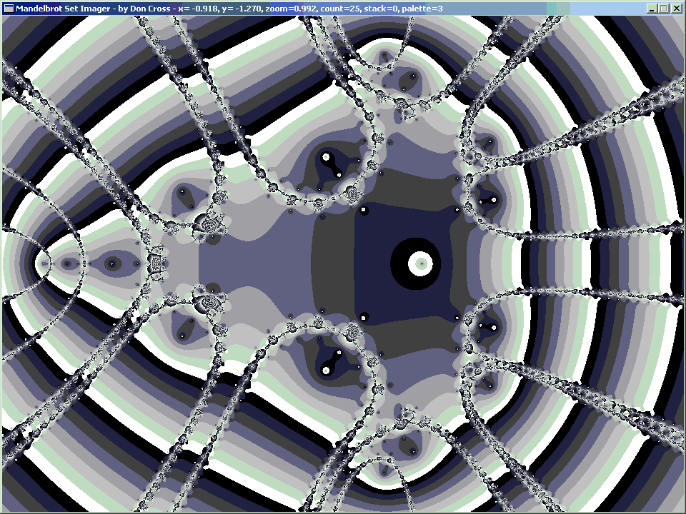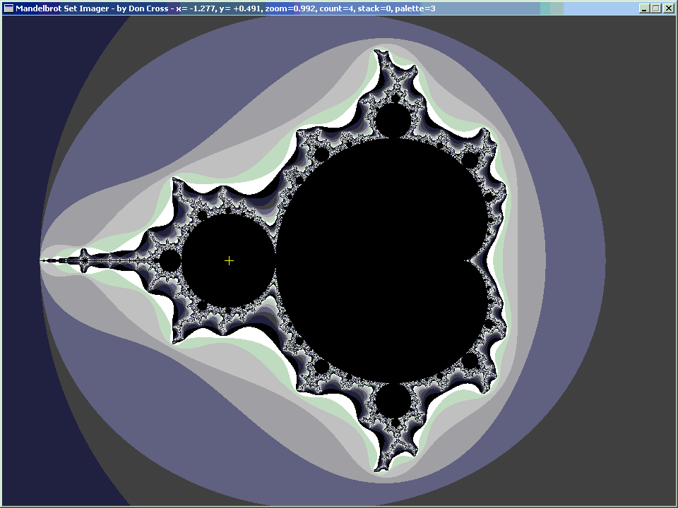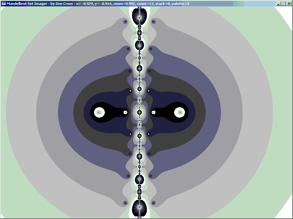 I made an interesting discovery today (29 January 2005). I realized that it is possible to look at the Mandelbrot Set in a different way. Usually it is graphed by iterating the formula