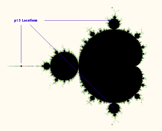 Figure 4: The Mandelbrot Set with p=3 regions labeled |