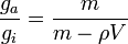 where ga denotes the gravitational acceleration corrected for air buoyancy, ρ is the density of air, and V is the volume of the pendulum weight.