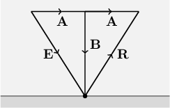 \[ \mathbf{R} = \mathbf{E} - 2 (\mathbf{E}\cdot\mathbf{\hat{n}})\mathbf{\hat{n}} \]