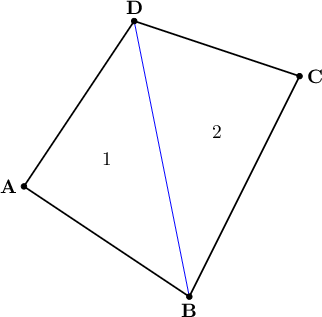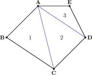 TriangleMesh can be used to build solids that have faces that are polygons other than triangles. Any polygon can be split up into triangles. For example, quadrilaterals and pentagons can be replaced with equivalent triangles as shown in Figures 12.6 and 12.7.